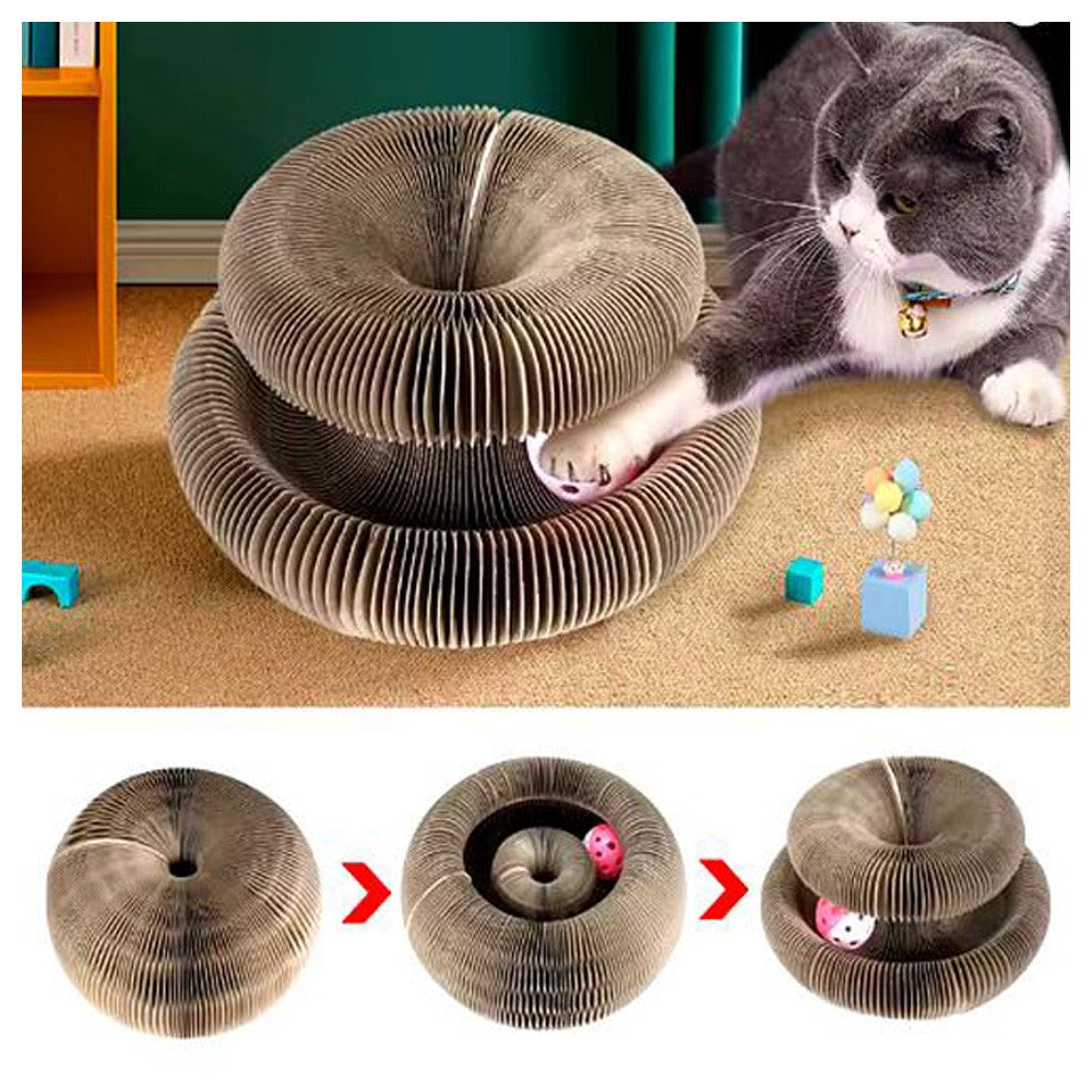 Sa conception pliable permet de le transformer en différentes formes; grille en nid d'abeille, cloche intégrée permettant ainsi différentes combinaisons ; par exemple mettre la cloche à l'intérieur ou à l'extérieur pour rendre votre chat plus amusant cette variété de configurations permet stimuler l'intérêt de votre félin.